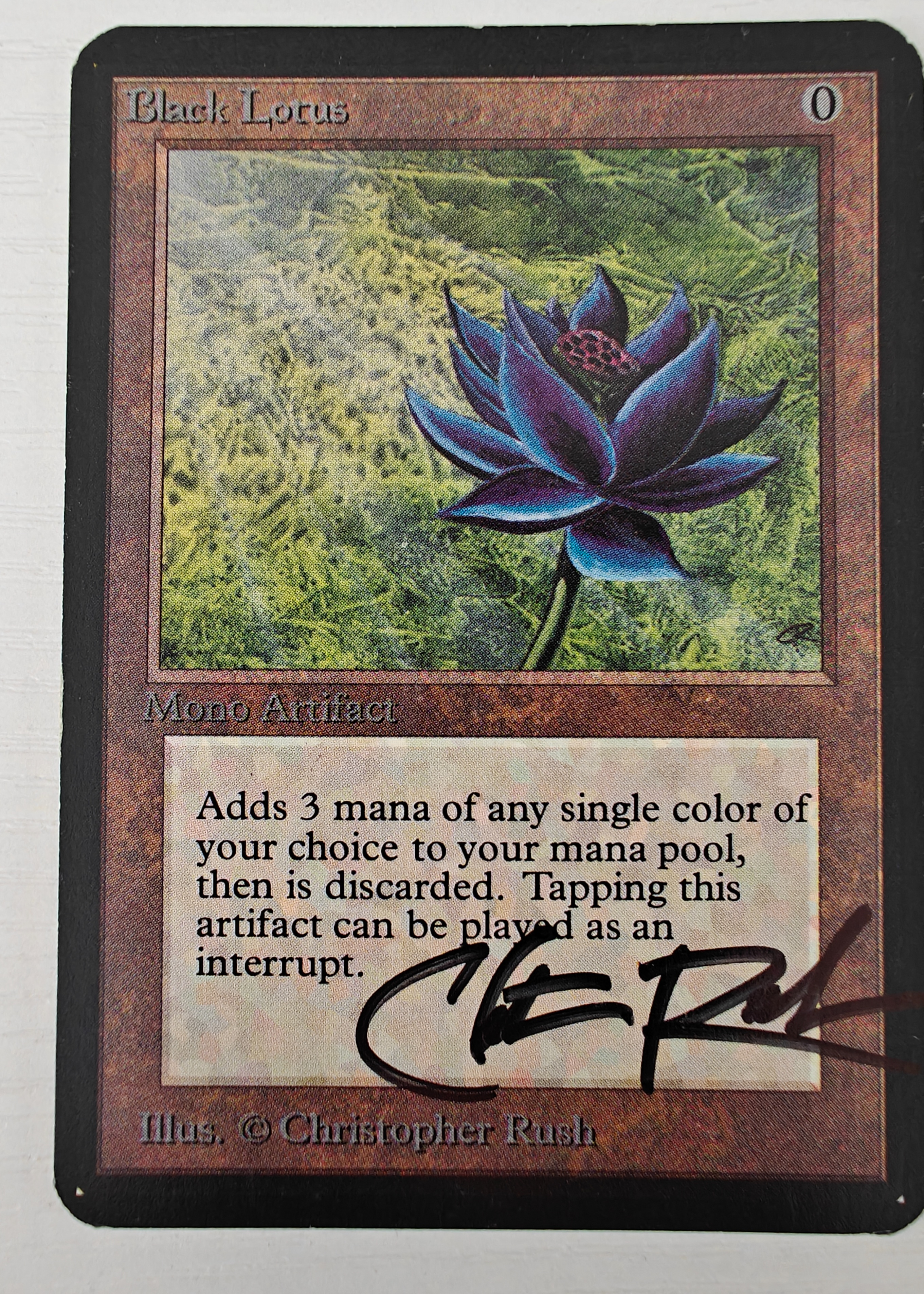 The front surface has a signature, which affects the grading. No other major scratches but there is slight wear on the front.