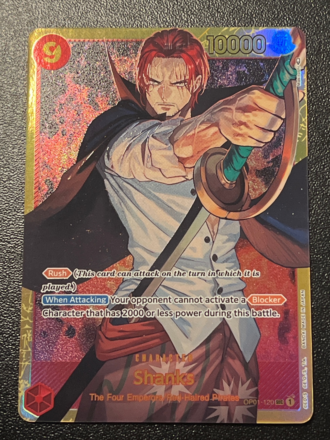 front - throughout holographic pattern