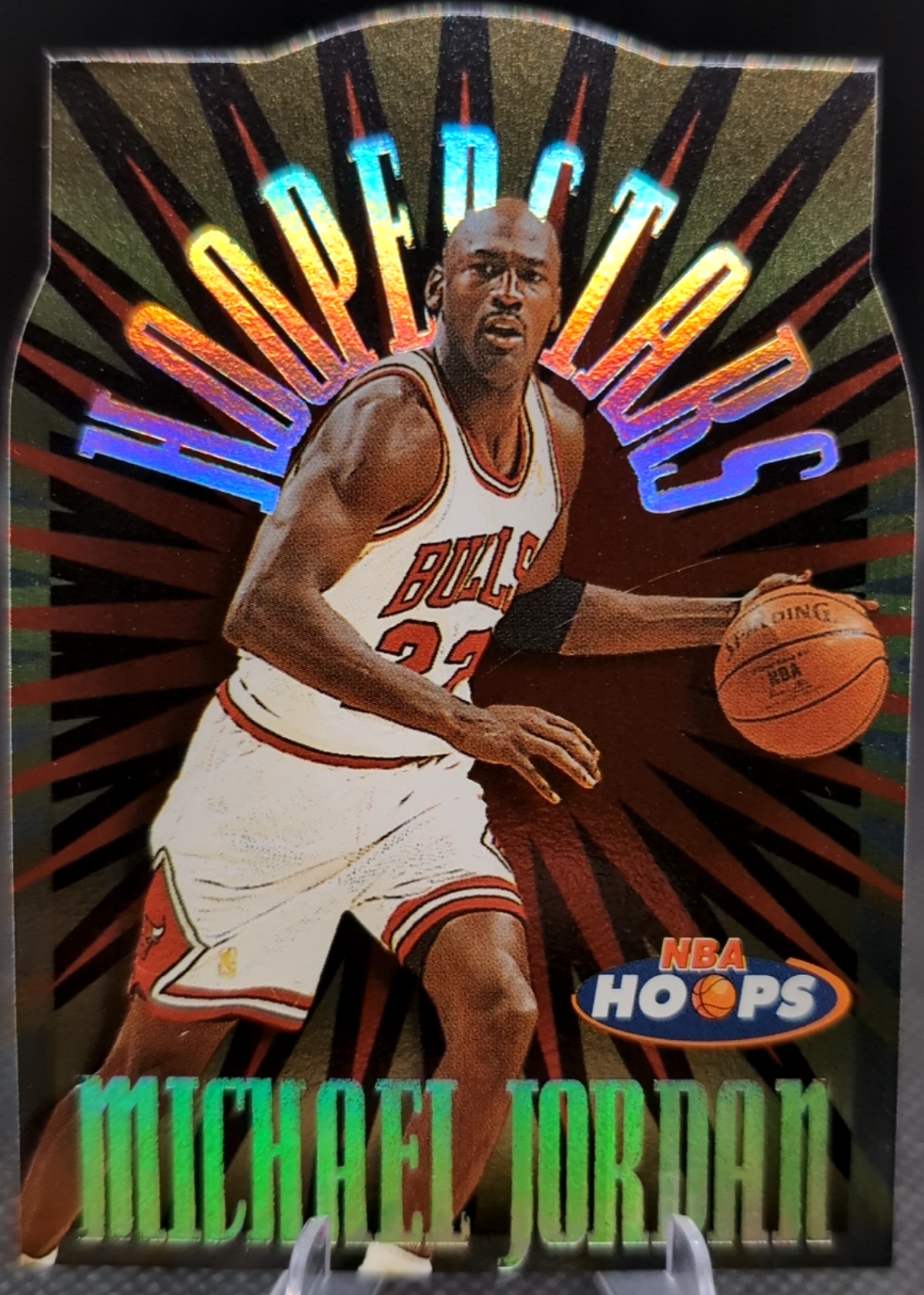 Holographic elements are vibrant with minor scratches impacting score.