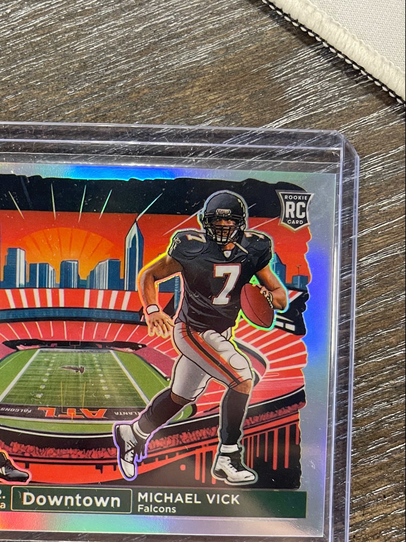 Minor scratches or print lines on the holographic surface.