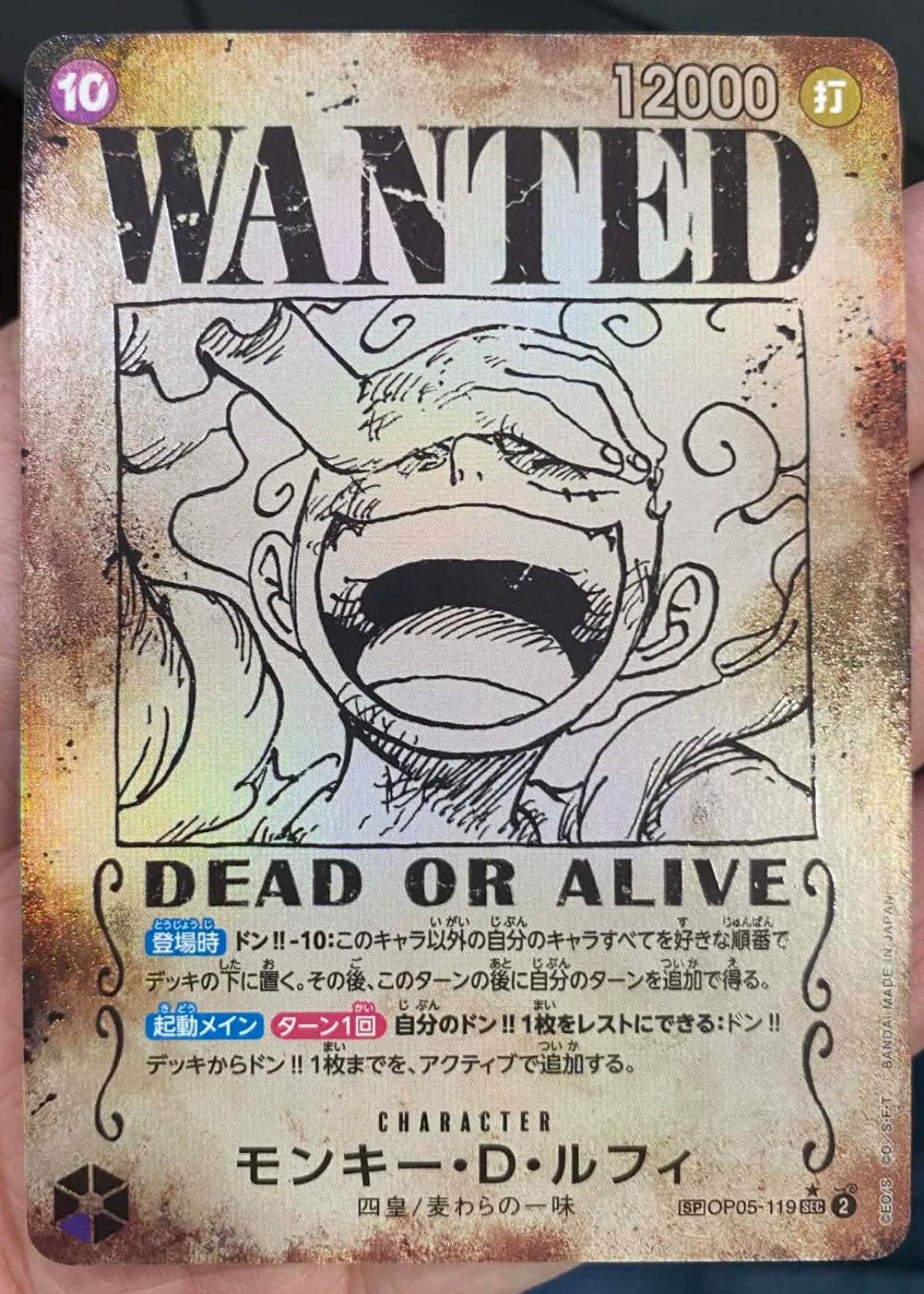 Front holographic surface has light scratches, particularly visible on top edge.