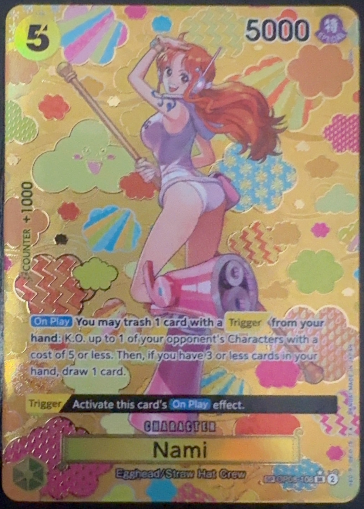 Visible scratches across the holographic surface.