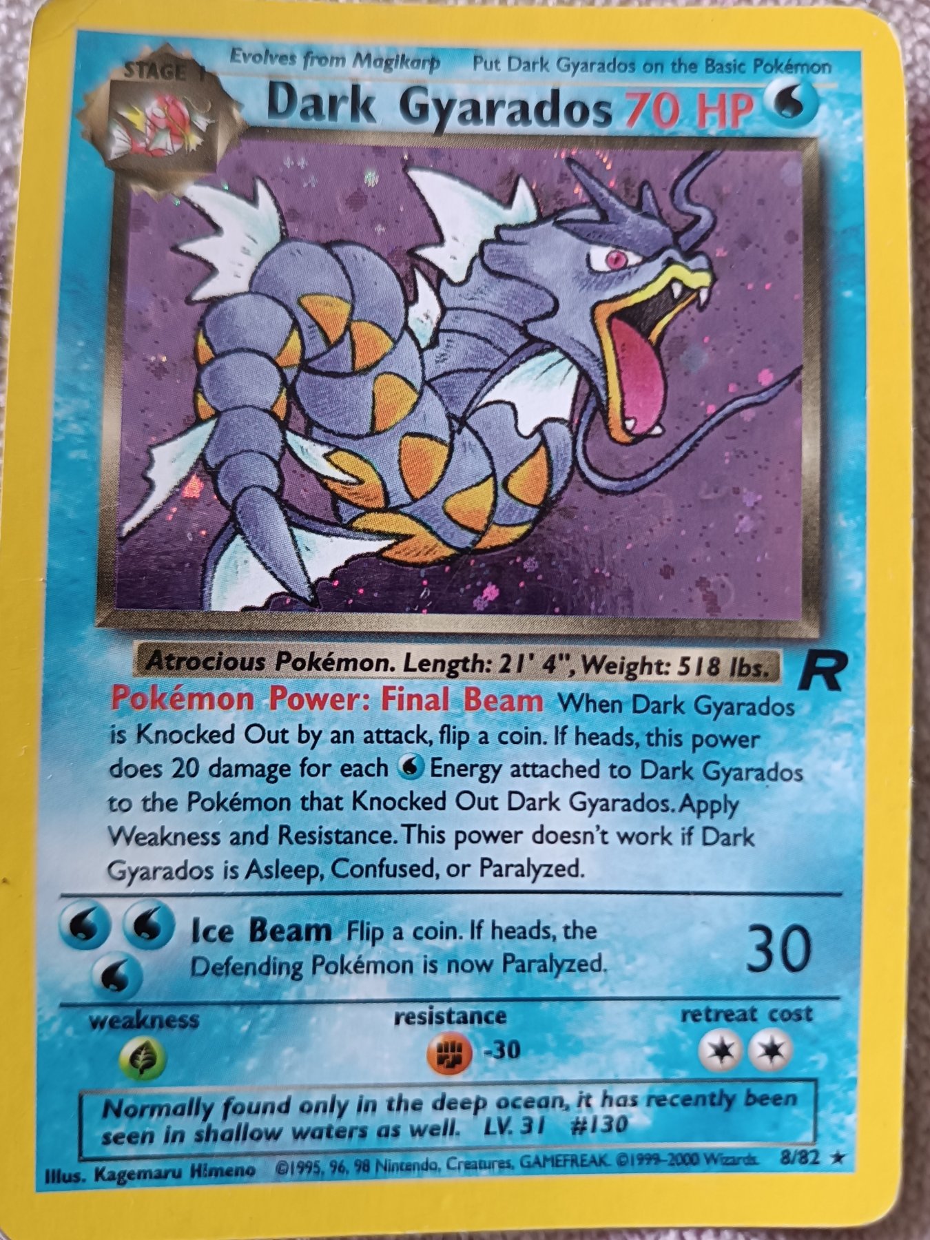 Scratches on the card surface, especially on the holographic area.