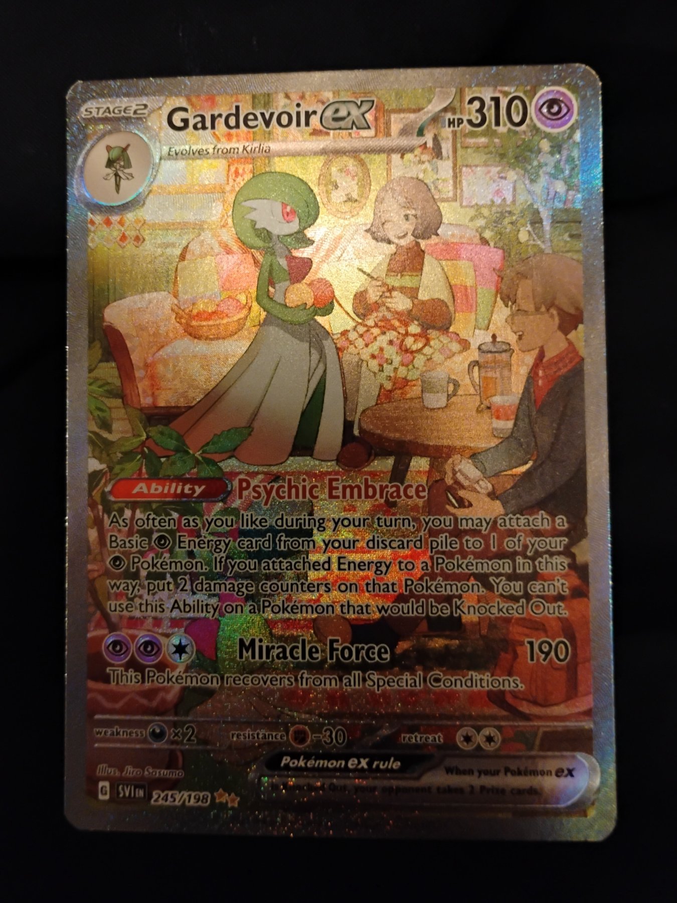 Faint print lines visible on the holographic surface