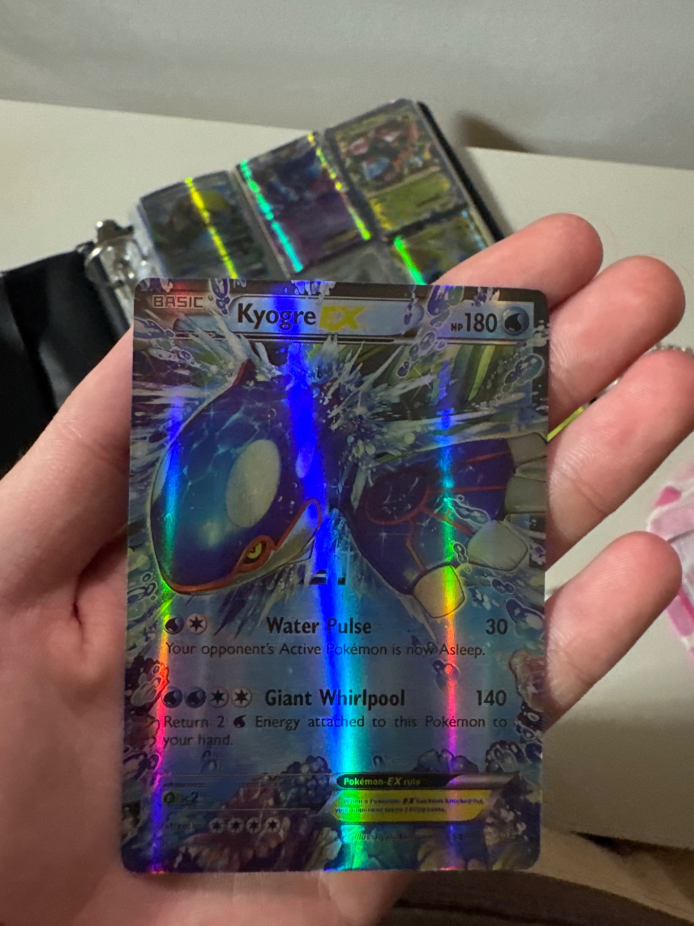 Some light scratches are visible on the holographic foil surface