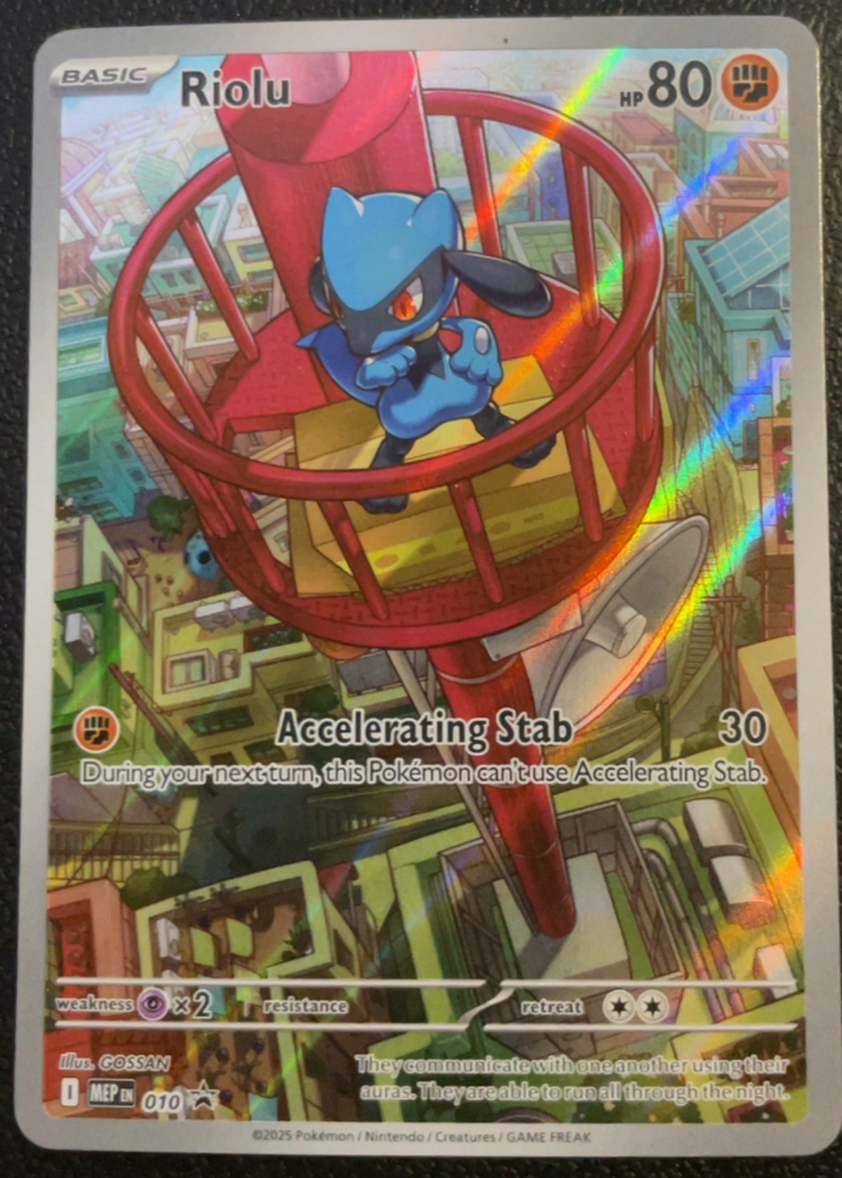 Full-art illustration rare holographic surface looks clean and vibrant. No visible scratching, cloudiness, or wear on the foil. Rainbow prismatic reflection visible and intact.