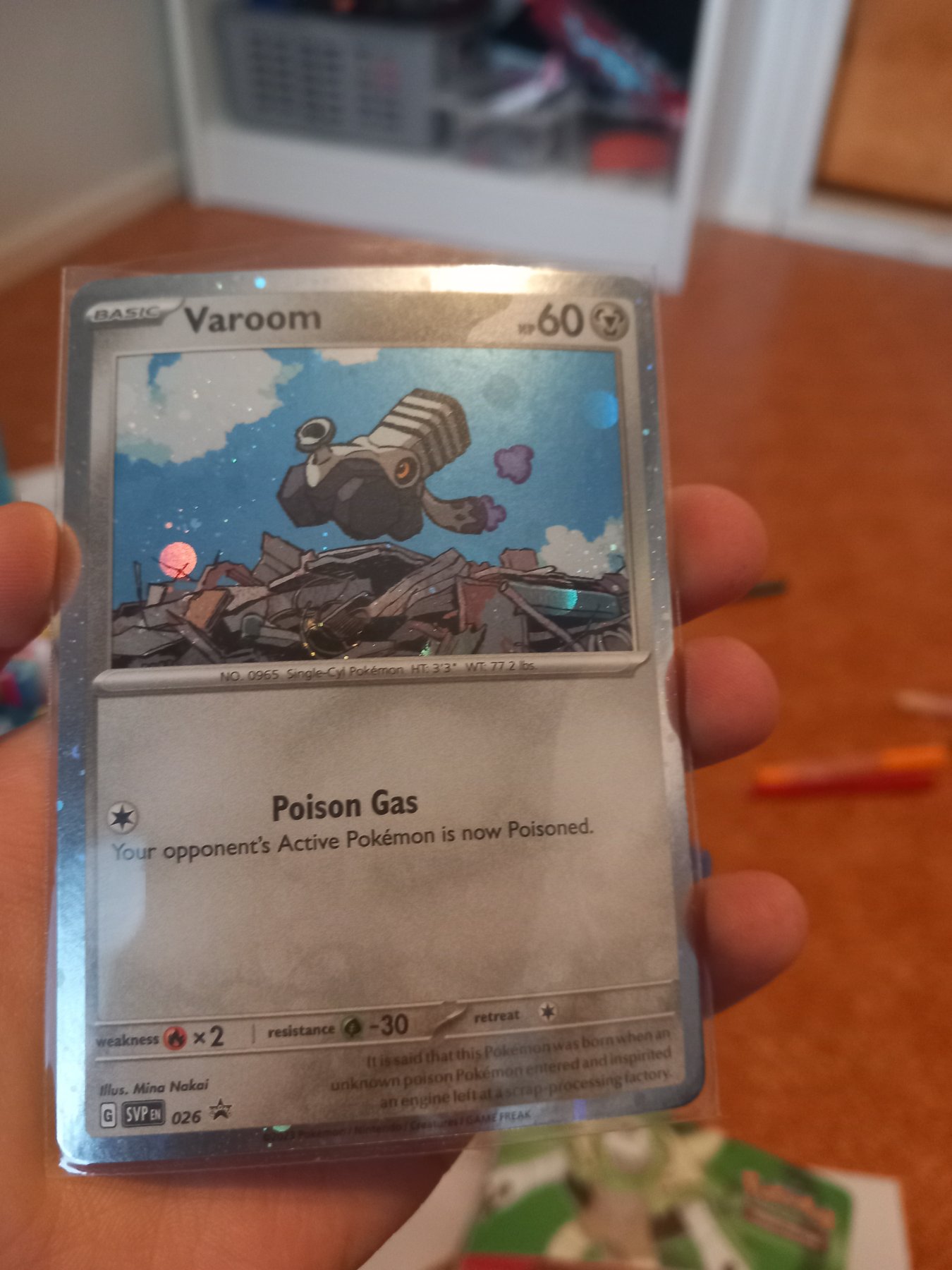 Minor scratches visible on the holographic surface.