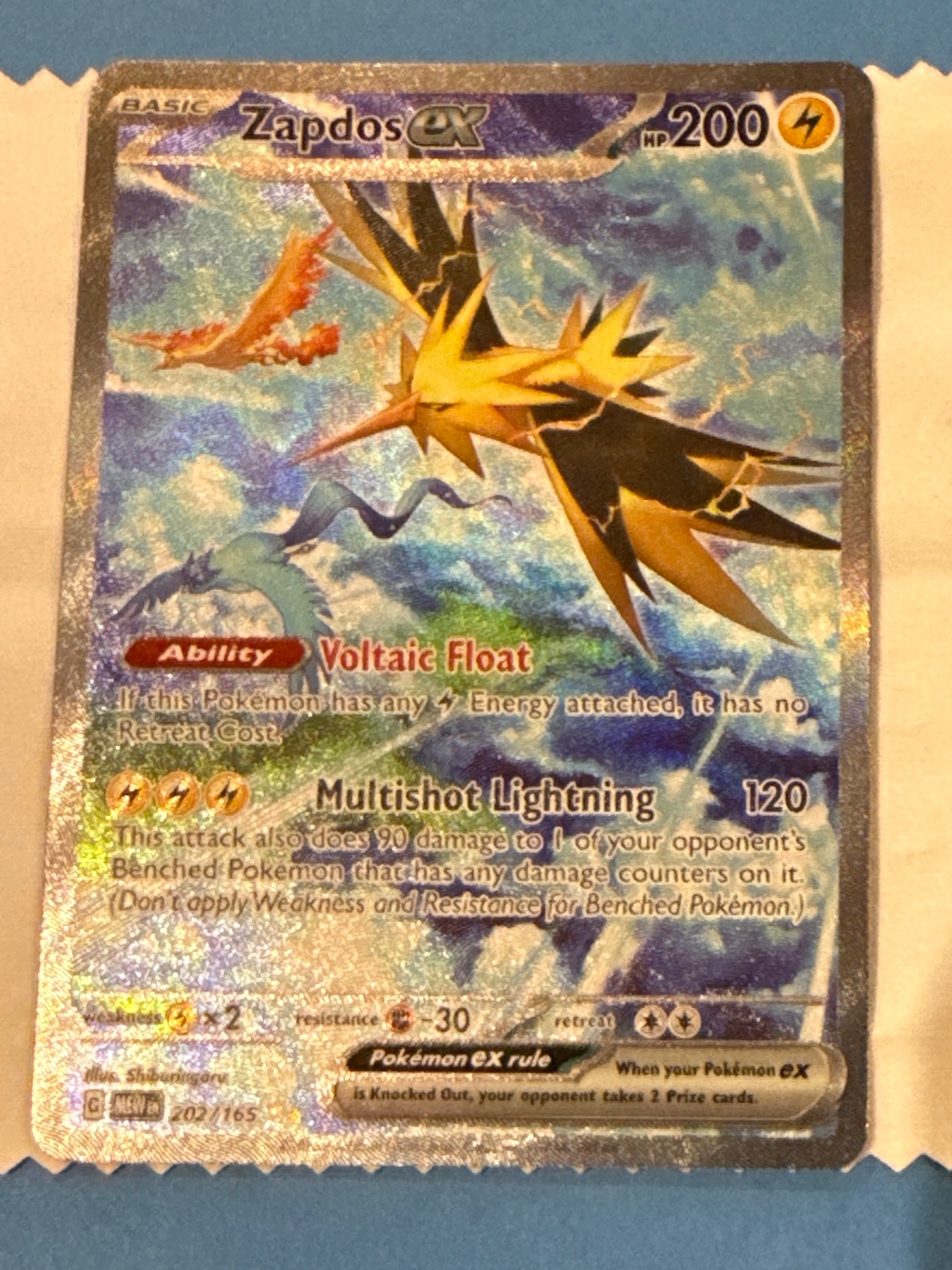 Minor scratches on the holographic surface.